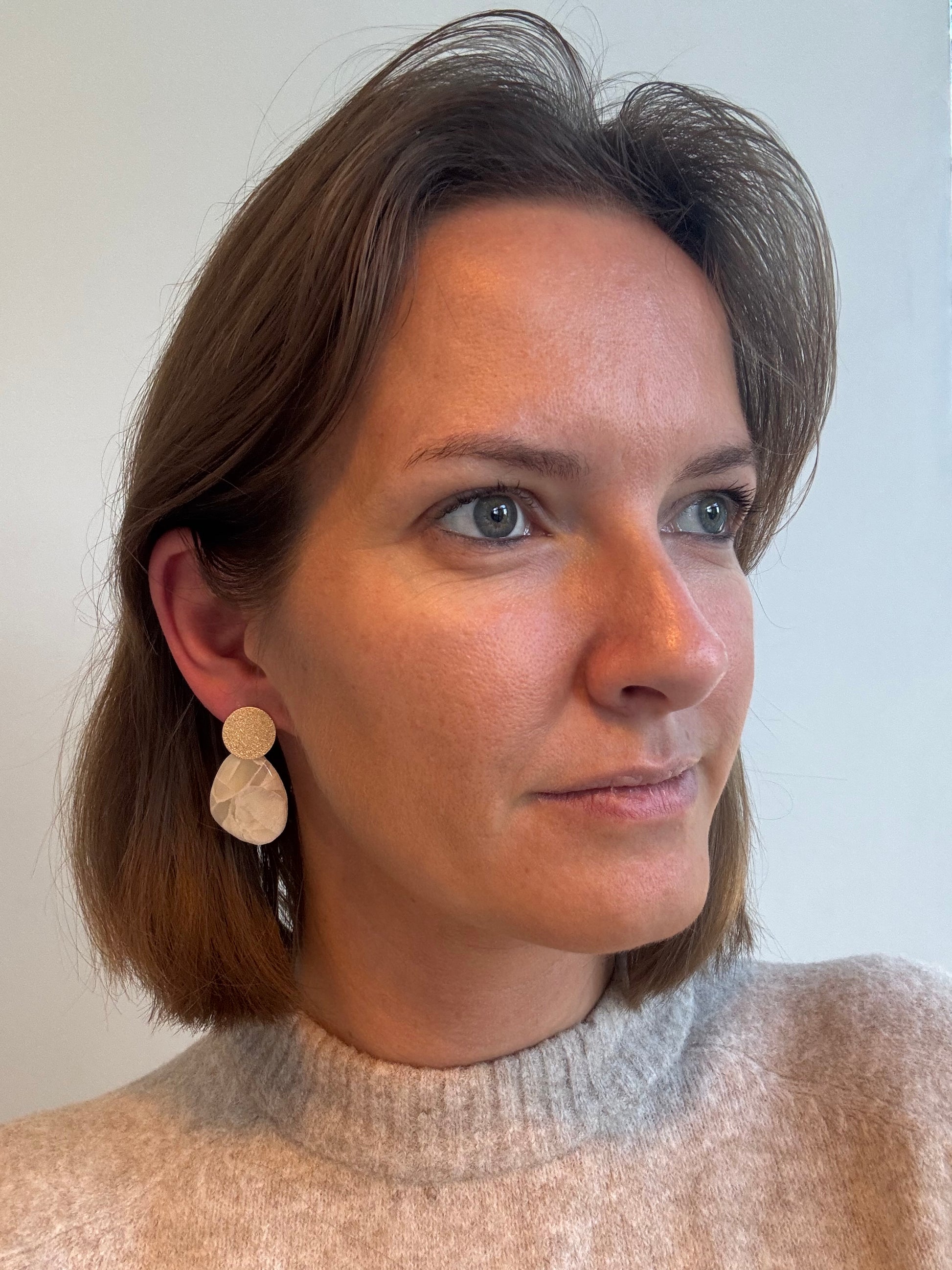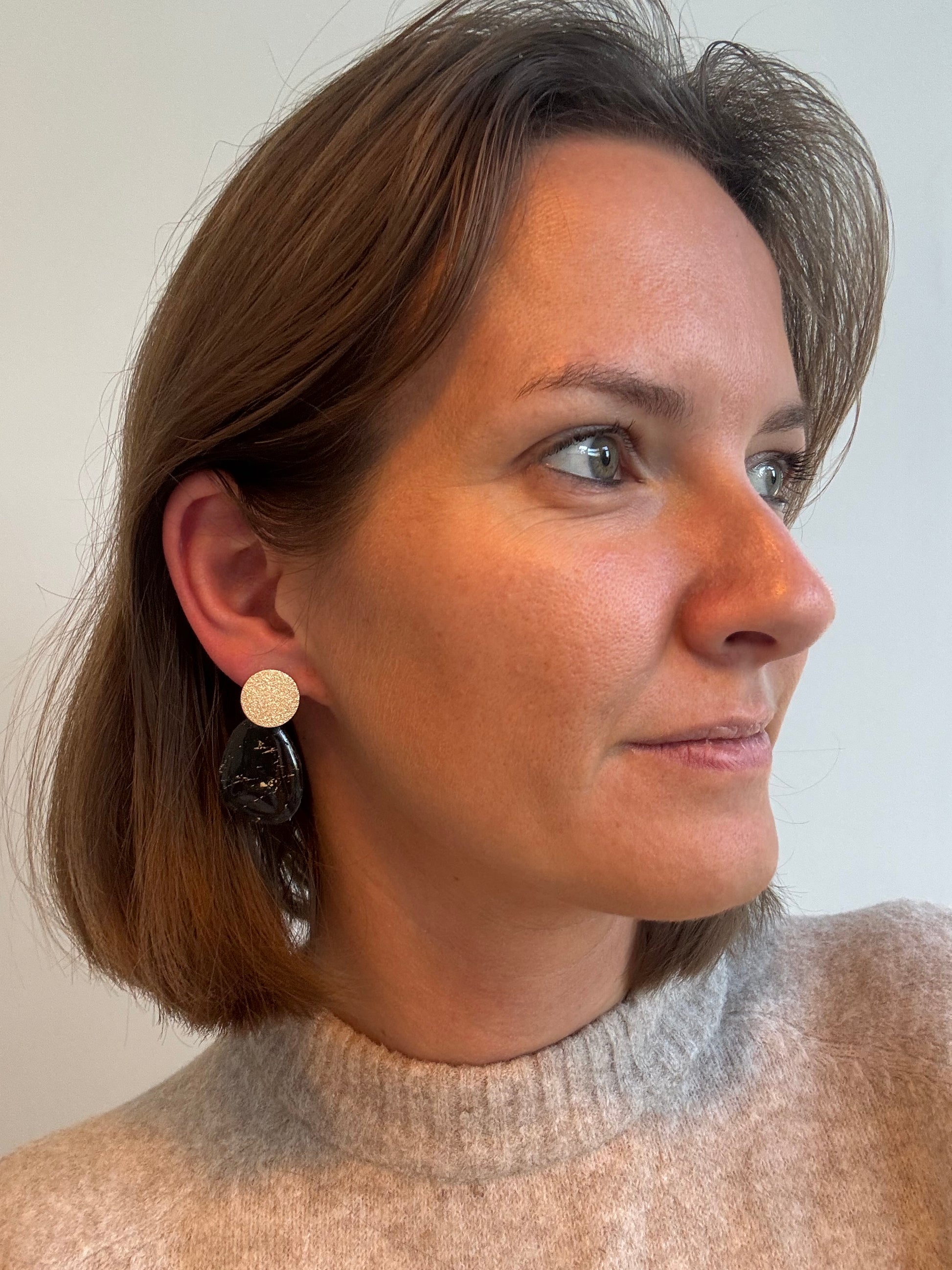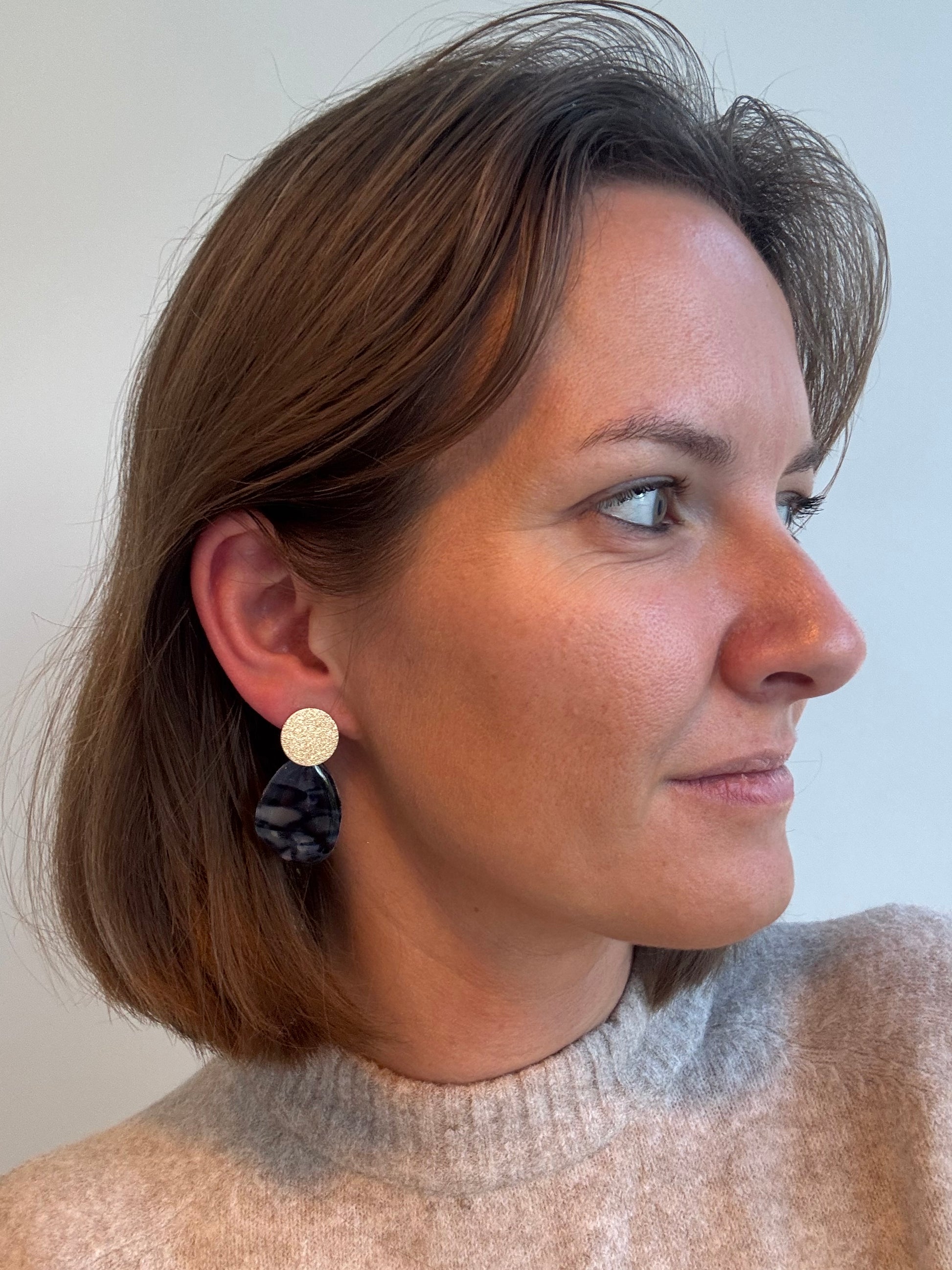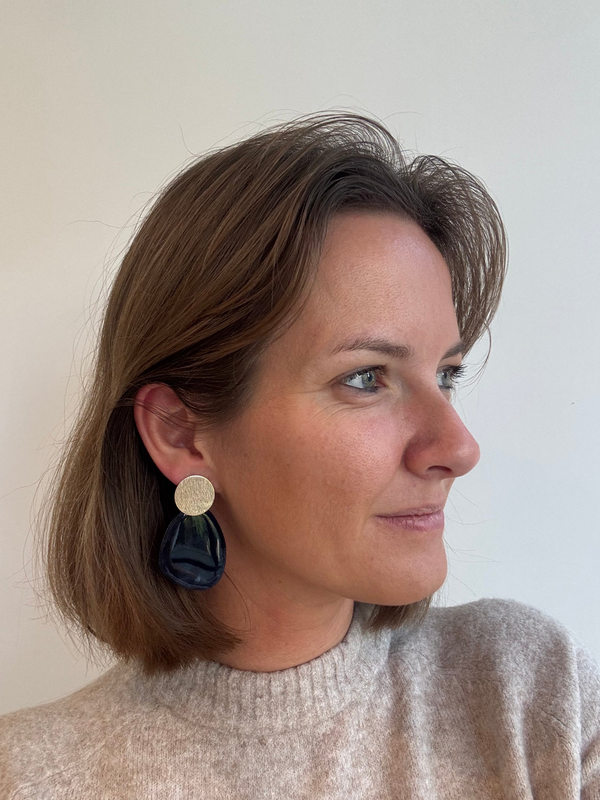 Némea, gedurfd en geometrisch, deze statement oorbellen combineren strakke vormen met een vleugje luxe. Perfect voor wie houdt van uitgesproken oorbellen met een moderne touch.
